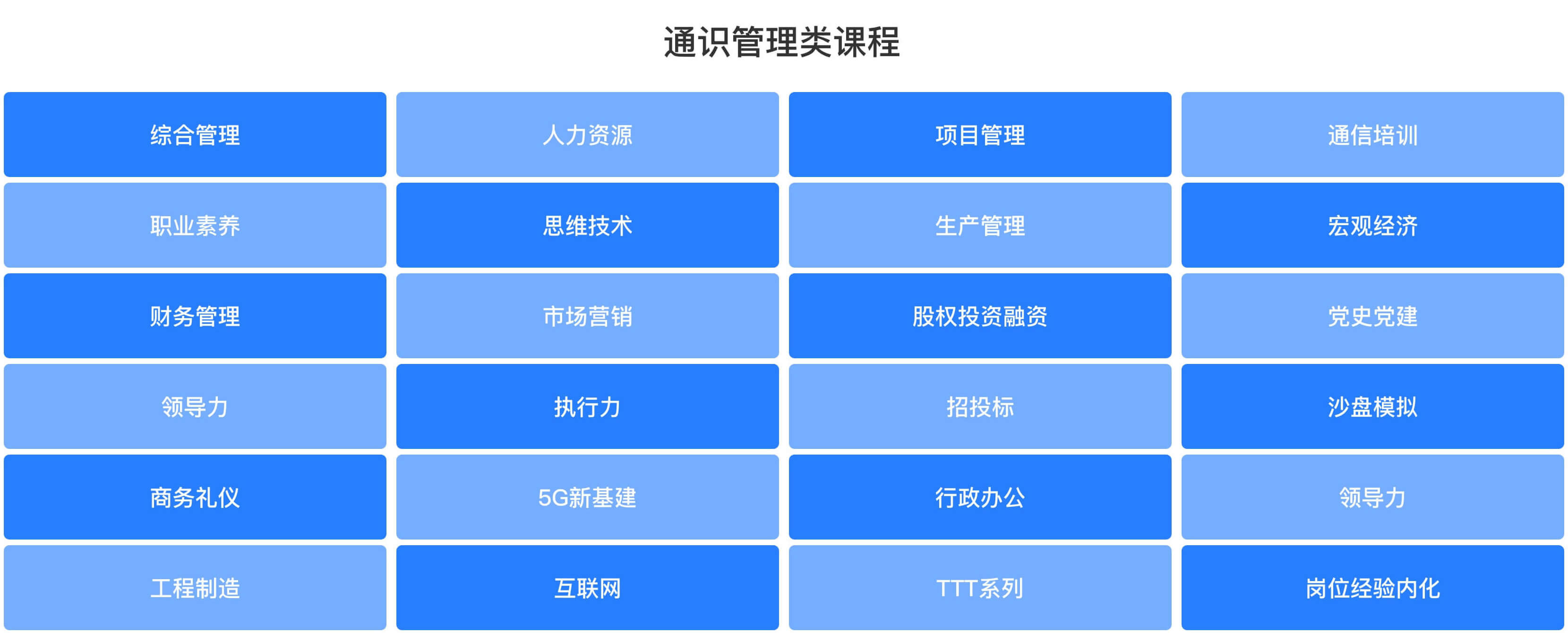 內訓服務對標行業(yè)發(fā)展,課程迭代緊跟企業(yè)需求,課程維度覆蓋15大技術類,19大非技術類課程方向。