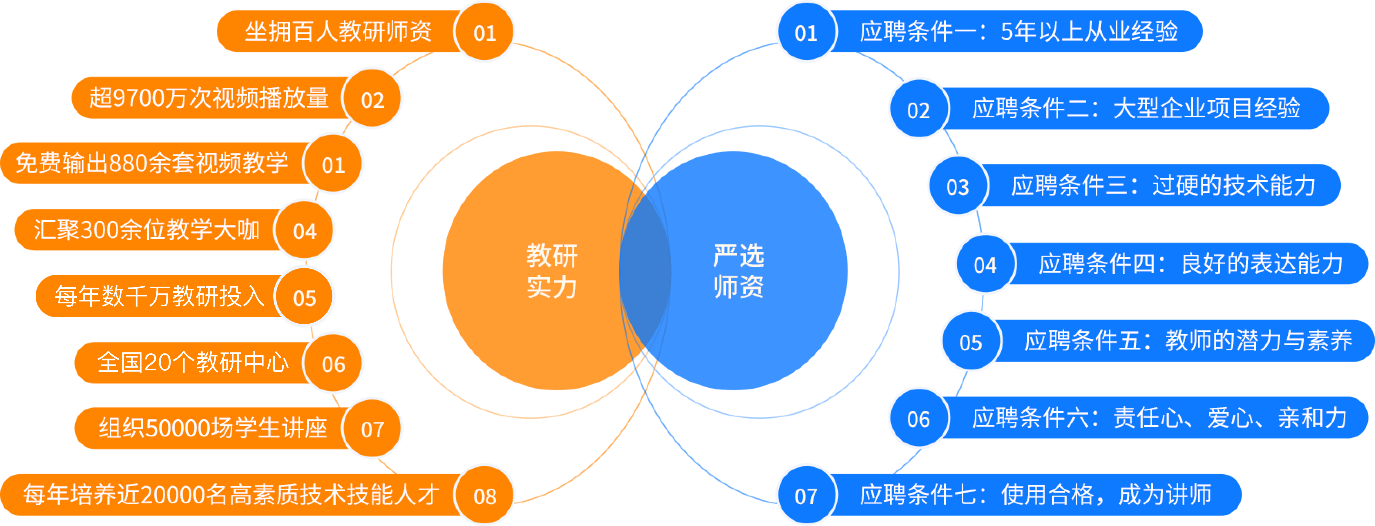 全面覆蓋各個技術方向,每位講師平均授課經驗超過3500課時,IT相關領域實踐經驗超過10年
